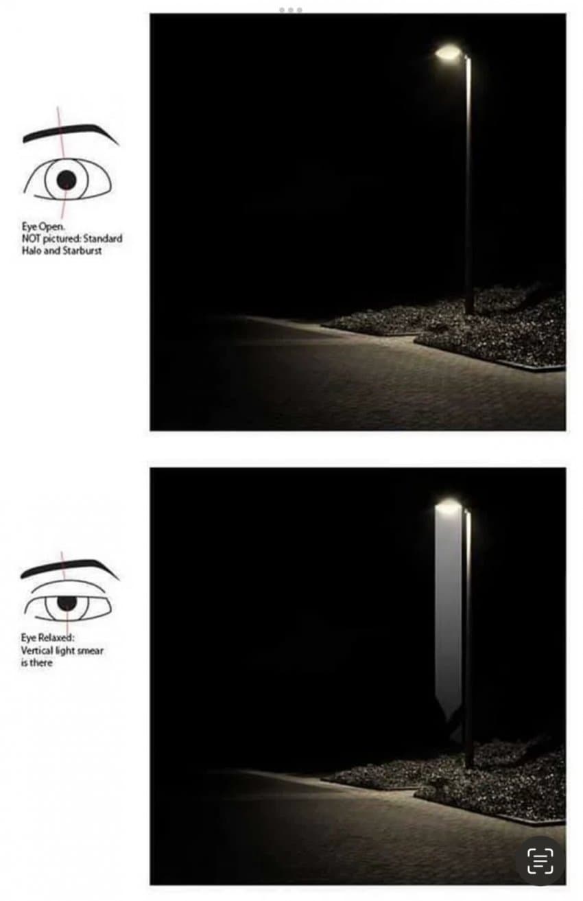 같은 빛인데도 빛을 밝게 느끼는 큰 이유는 구면수차 때문이다. 빛이 밝을 수록 눈깜빡일때 빛 늘어짐이 심해진다. 따라서 구면수차가 빛을 더더울 밝게 느끼게 하고 빛 늘어짐을 진하게 만든다는게 내 생각이다.